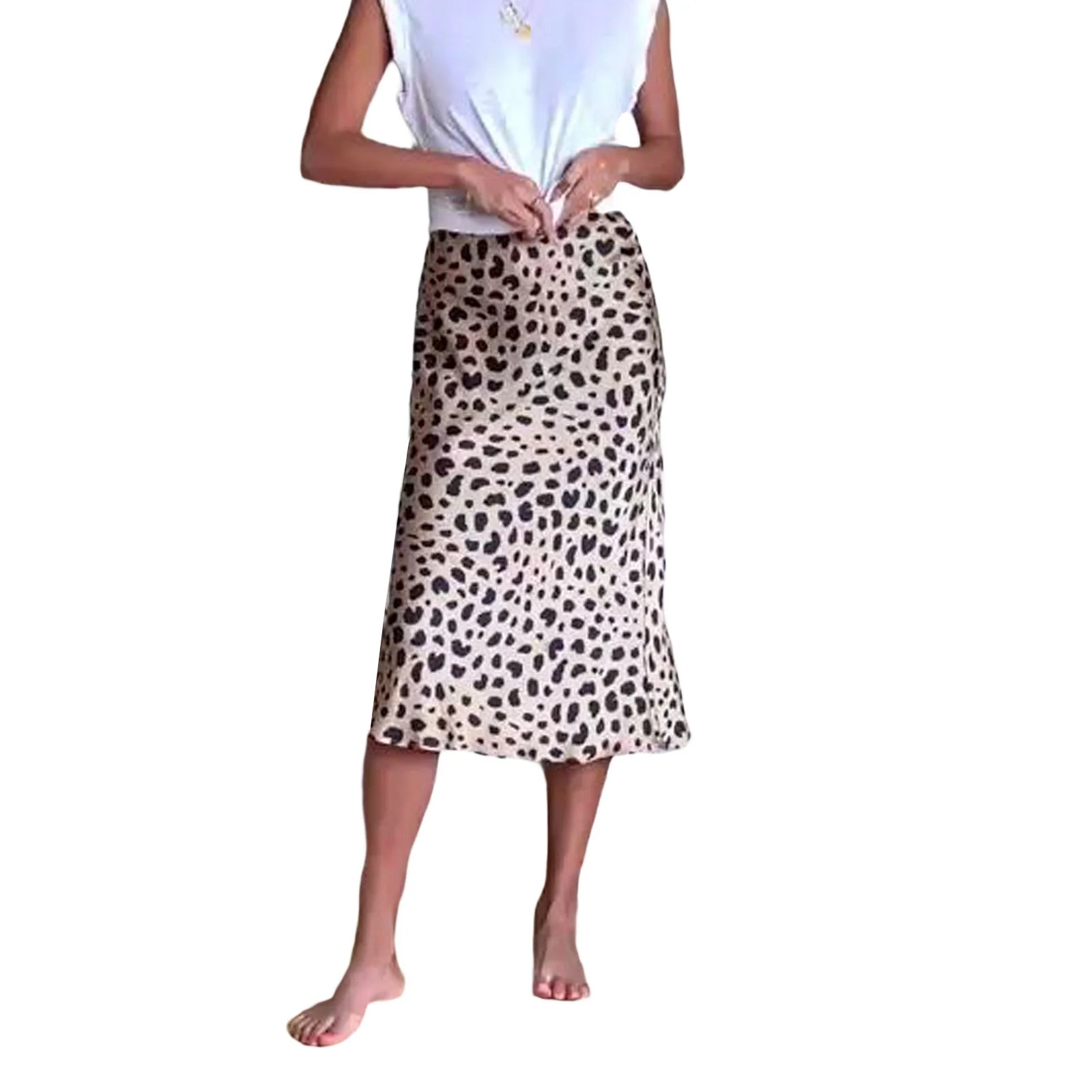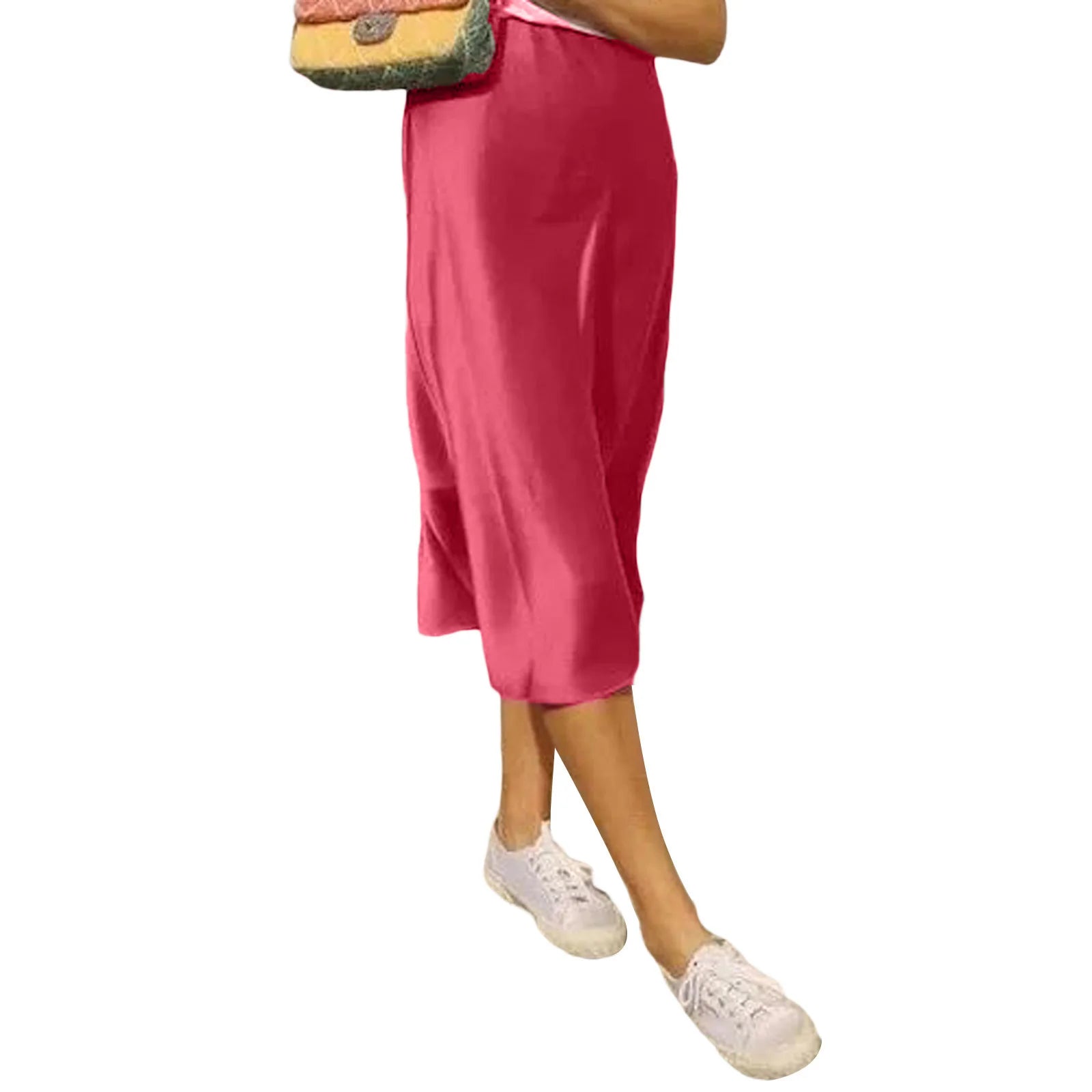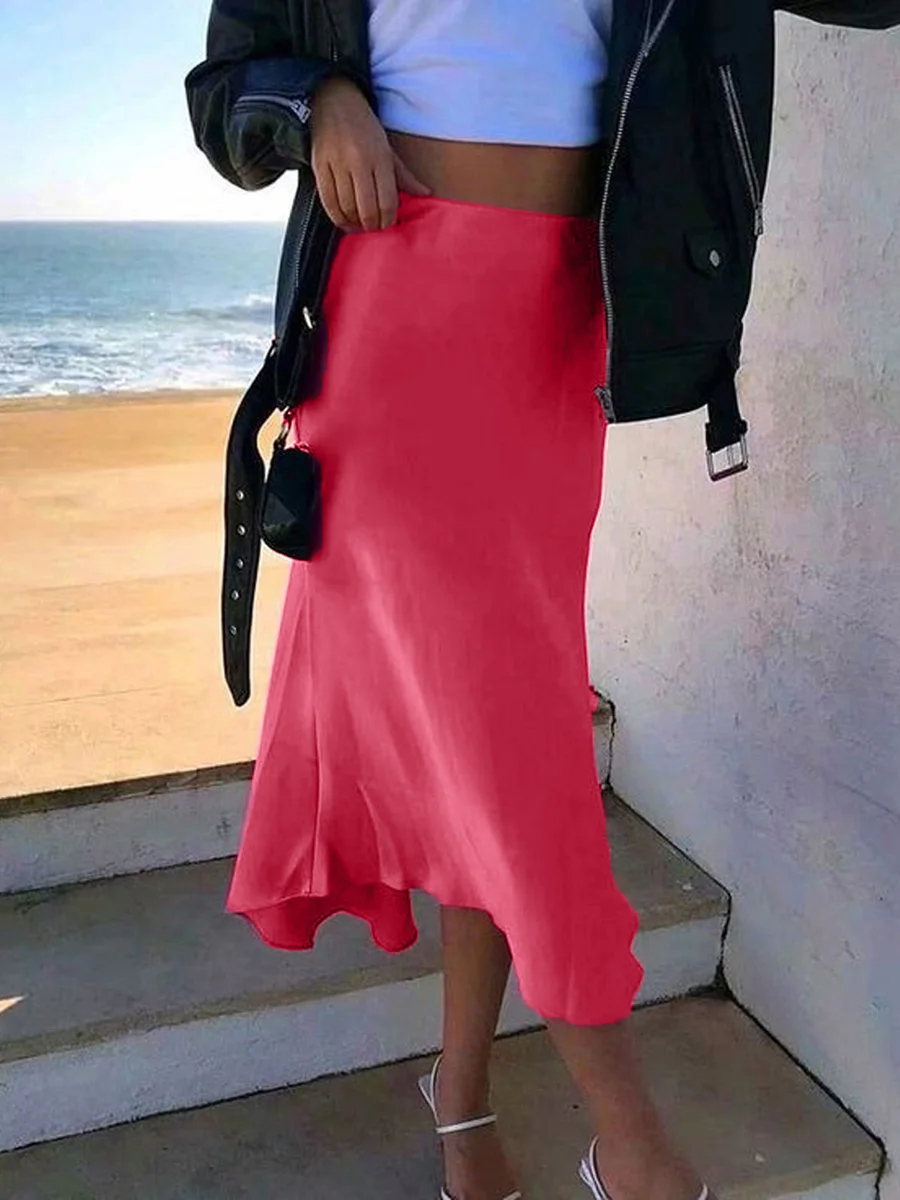 Women's Summer High Waist Skirt Solid Color Long Satin Skirt for Travel, Beach, Shopping